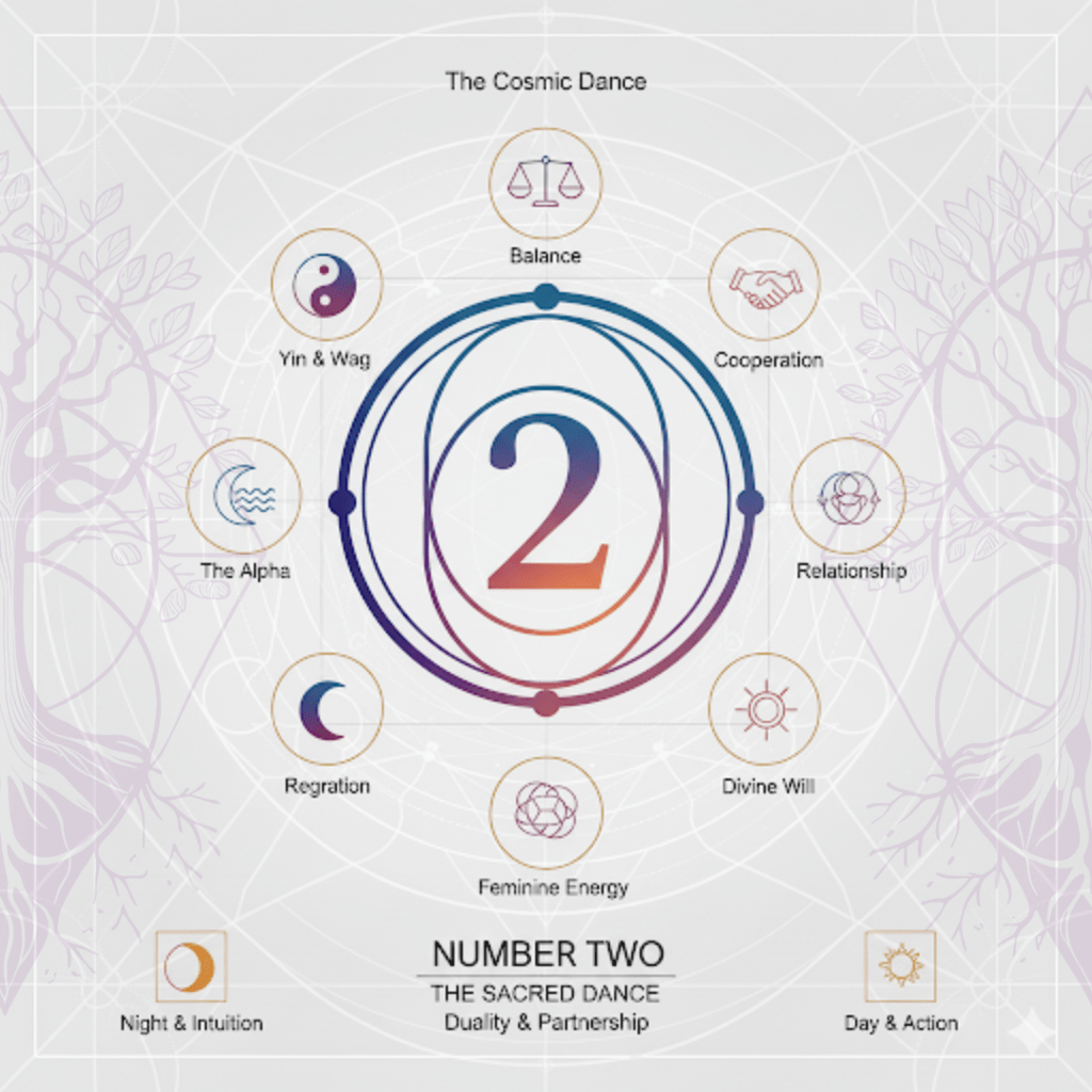 Number two introduces relationship and reflection, enabling harmony and growth through the dynamic of opposites. Without 2, there would be no conversation, no connection.