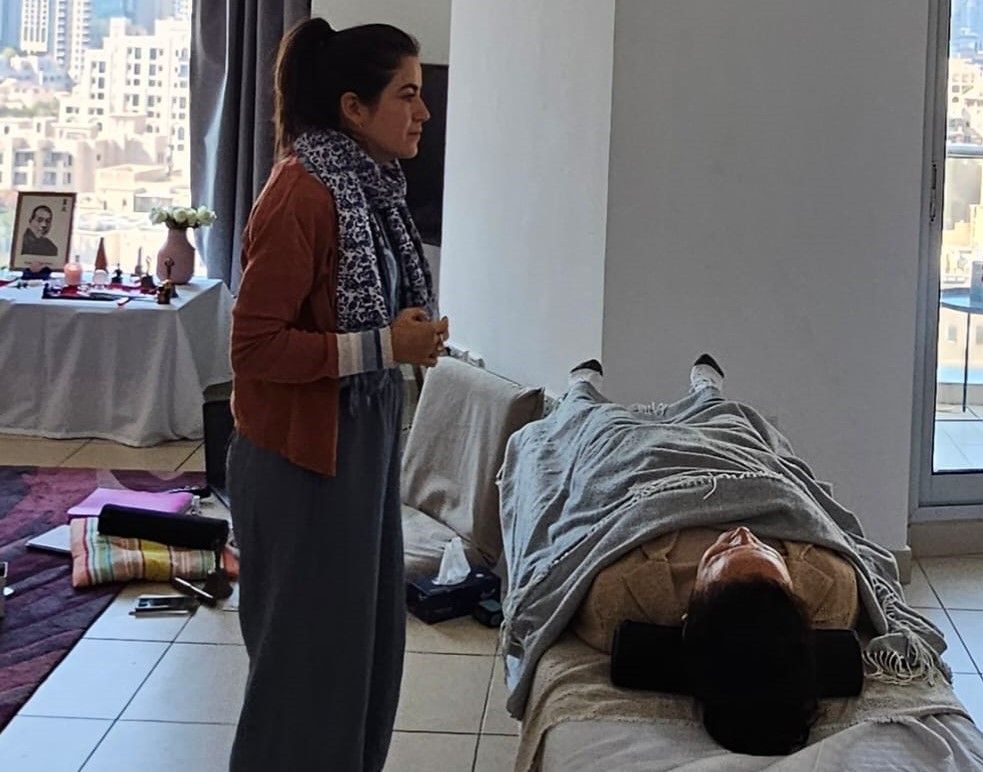 For in-person sessions in Dubai, you will also experience vibroacoustic massage, a deep therapeutic technique in which sound frequencies are transmitted directly into the body, encouraging cellular alignment, deep relaxation, and energetic reorganization.